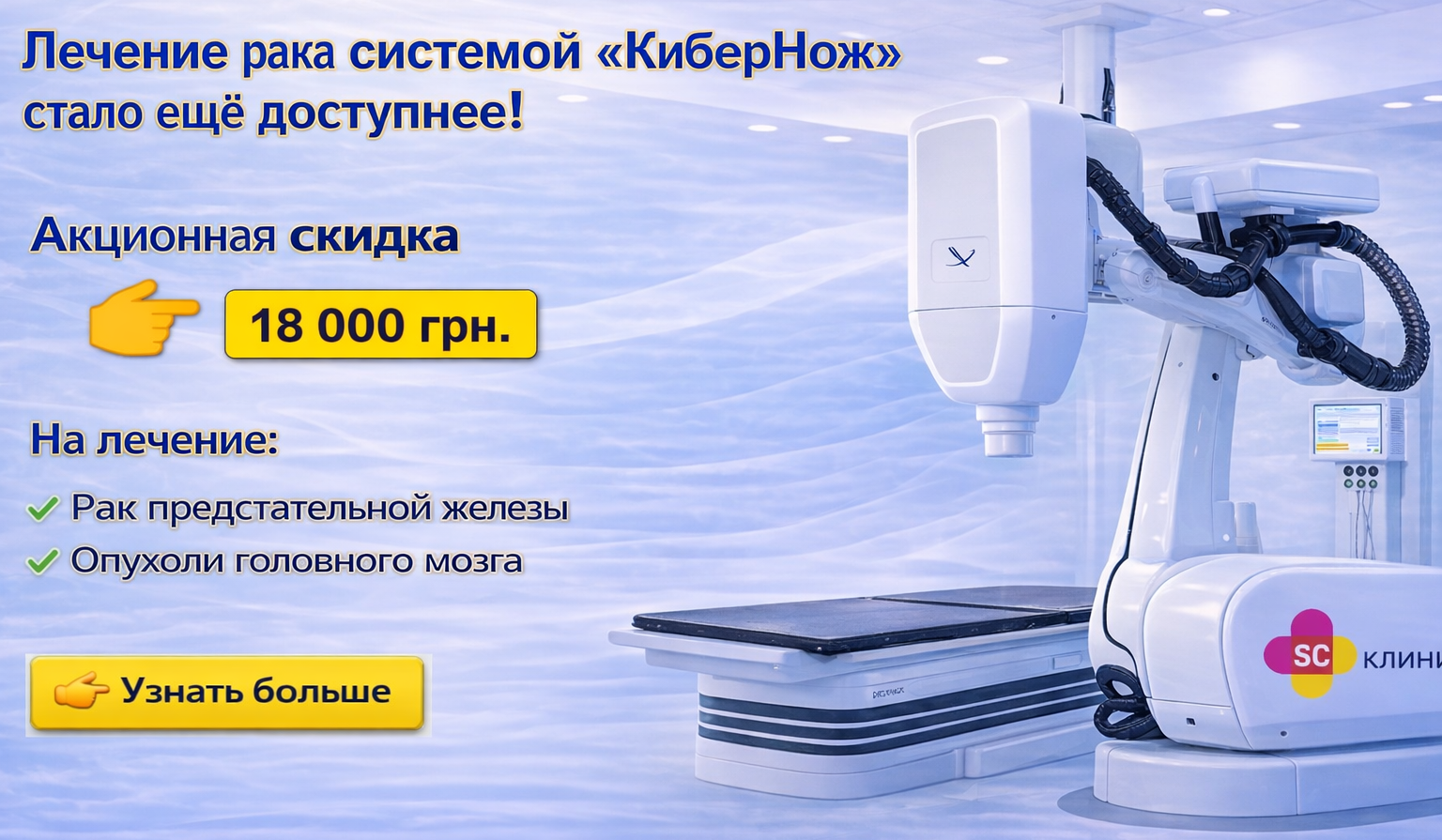 Скидка на лечение с системой «Cyberknife» — 18000 грн. до 30 апреля!