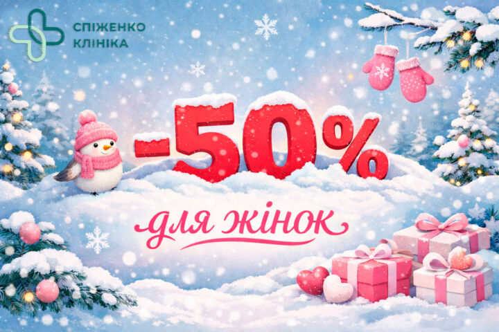 – 50% на первинну консультацію гінеколога з 09.02 – 23.02.2026.